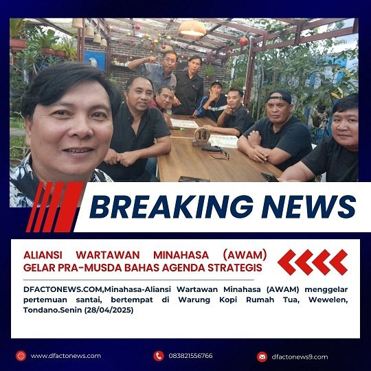DFACTONEWS.COM,Minahasa-Aliansi Wartawan Minahasa (AWAM) menggelar pertemuan santai, bertempat di Warung Kopi Rumah Tua, Wewelen, Tondano.Senin (28/04/2025)