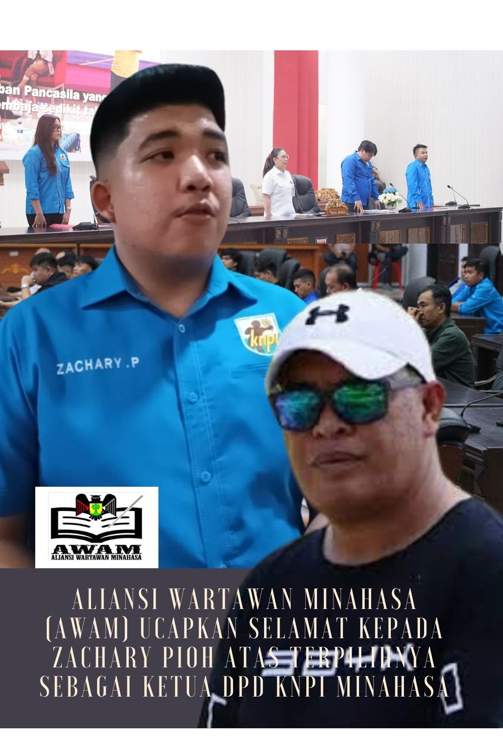 Aliansi Wartawan Minahasa (AWAM) menyampaikan ucapan selamat kepada Zachary Pioh yang terpilih sebagai Ketua Dewan Pengurus Daerah Komite Nasional Pemuda Indonesia (DPD KNPI) Kabupaten Minahasa dalam Musyawarah Daerah (Musda) KNPI Minahasa Tahun 2025 yang berlangsung pada Selasa, 30 April 2025.
