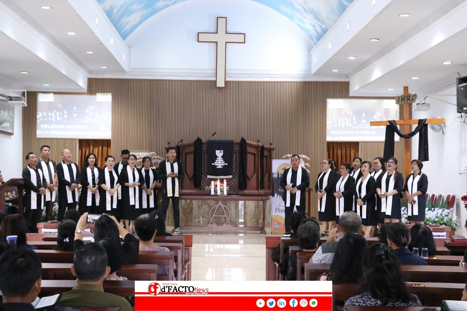 DFACTONEWS.COM,Minahasa-Bupati Minahasa, Penatua Robby Dondokambey, S.Si, MAP., bersama Ibu Penatua Martina Dondokambey-Lengkong, SE., yang juga menjabat sebagai Ketua Tim Penggerak PKK Kabupaten Minahasa, turut hadir dan beribadah bersama jemaat GMIM Petra Sawangan dalam peringatan Jumat Agung, Jumat (18/4/2025).