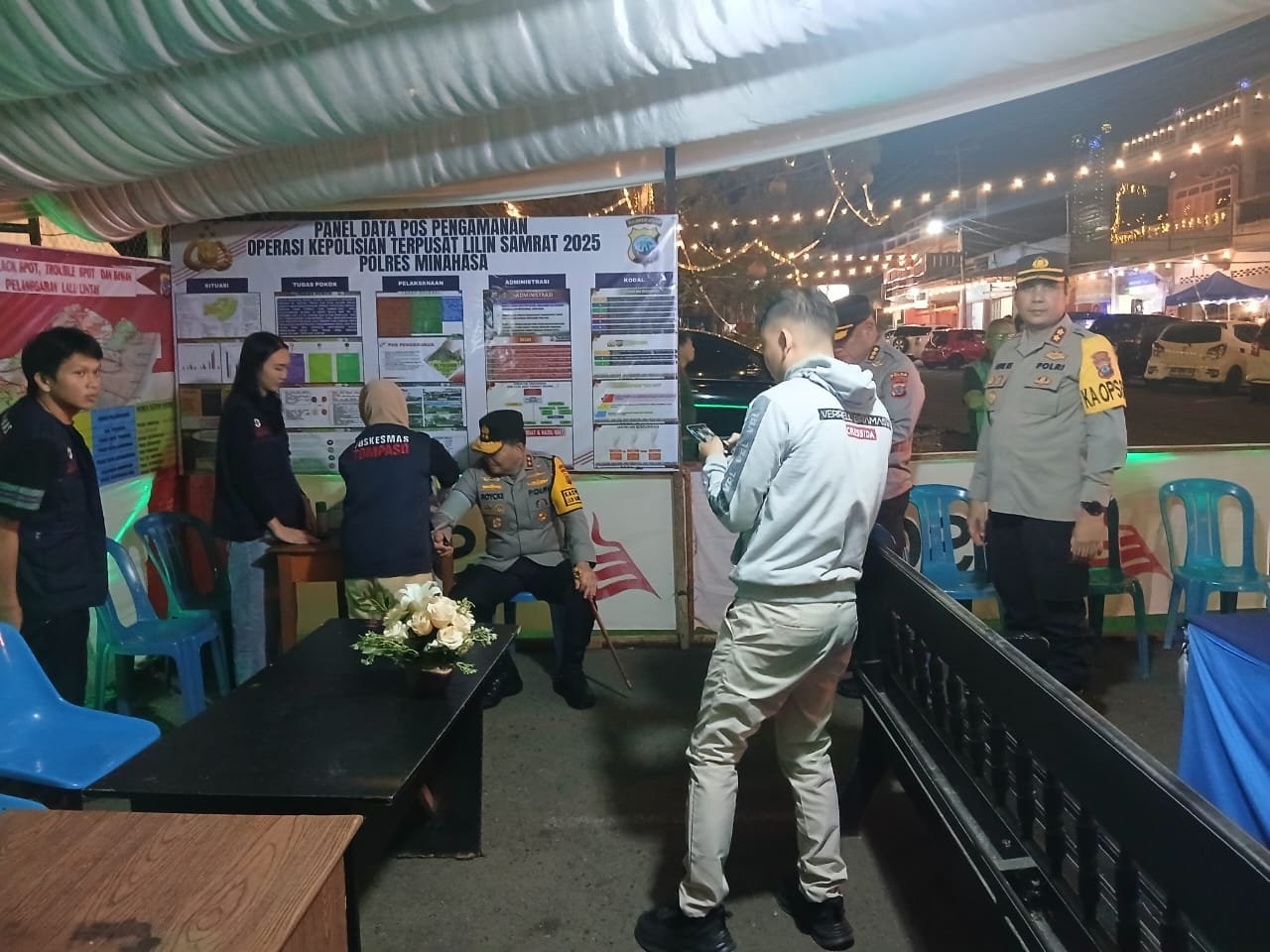 DFACTONEWS.COM,KAWANGKOAN — Kapolda Sulawesi Utara Irjen Pol Dr. Roycke Harry Langie, S.I.K., M.H. melakukan pengecekan langsung kesiapan Pos Pengamanan, Pos Pelayanan, dan Pos Terpadu Operasi Lilin Samrat 2025 di wilayah hukum Polres Minahasa, Sabtu (20/12/2025) sore. Kegiatan ini dilakukan untuk memastikan pengamanan perayaan Natal 2025 dan Tahun Baru 2026 berjalan optimal.