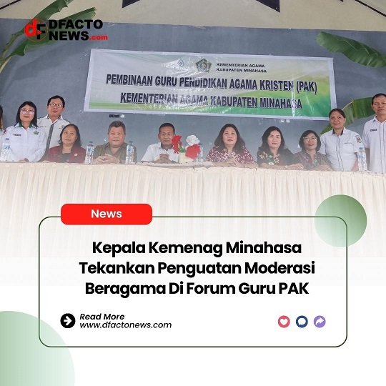 DFACTONEWS.COM,MINAHASA-Kepala Kantor Kementerian Agama Kabupaten Minahasa, Pdt. Dolie Tangian, S.Th, M.Pd menghadiri sekaligus memberikan sambutan dalam kegiatan Kelompok Kerja Guru (KKG) dan Musyawarah Guru Mata Pelajaran (MGMP) Pendidikan Agama Kristen yang digelar di SMK Negeri 3 Tondano, Rabu (15/5/2025).