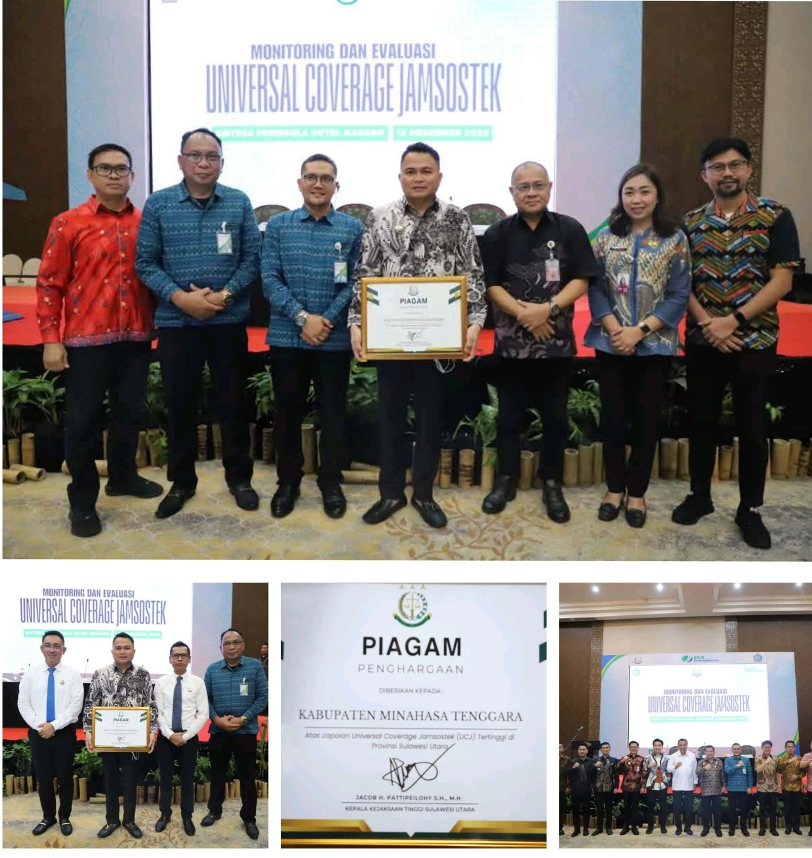 Penghargaan tersebut diserahkan langsung oleh Kepala Kejaksaan Tinggi Sulawesi Utara, Jacop Hendrik Pattipeylohi, SH, MH, dalam agenda Monitoring dan Evaluasi Universal Coverage Jaminan Sosial Ketenagakerjaan (Jamsostek) yang digelar di Hotel Sintesa Peninsula, Manado, Kamis 18/12/2025.